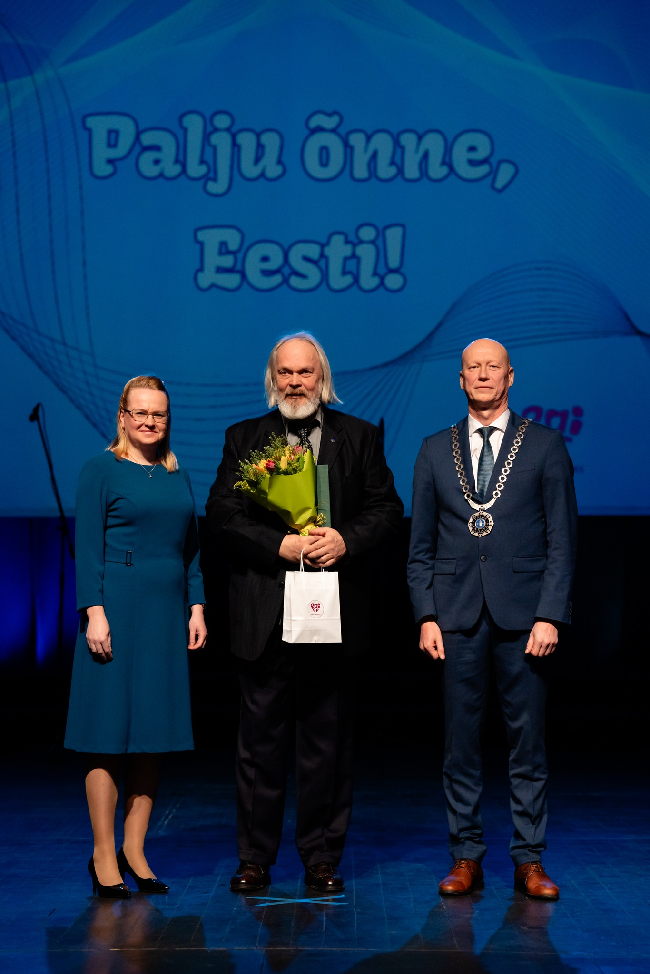 Fotol võtab tunnustust vastu kultuuripreemia laureaat, kunstnik ja Paide kunstikooli õpetaja Margus Tiitsmaa.
