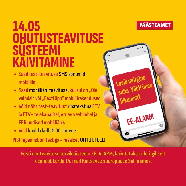 14. mai pärastlõunal käivitatakse Kaitseväe suurõppuse Siil ajal üleriigiliselt ka ohuteavituse terviksüsteem